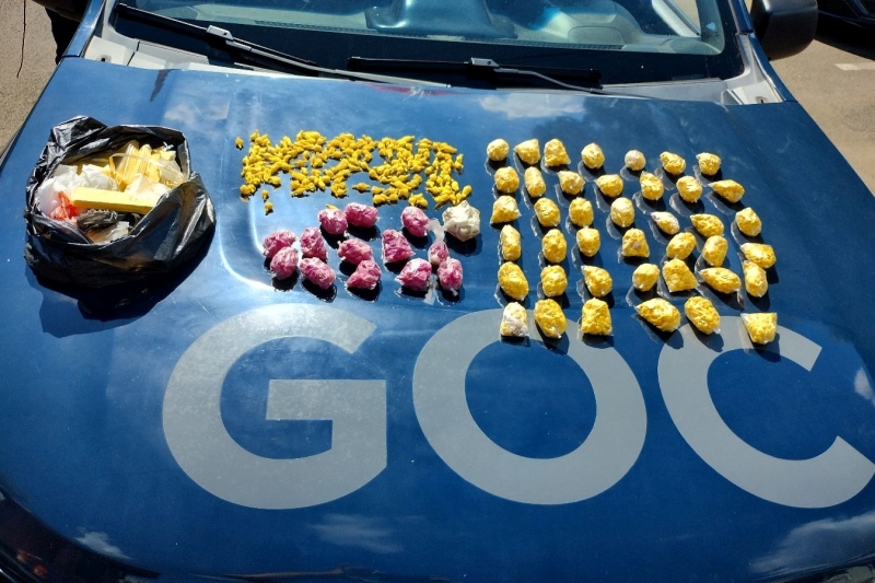 Na averiguação da indicação, os guardas avistaram um invólucro e no seu interior um total de 576 pedras de crack, sendo 75 delas avulsas e o restante dividido em kits.