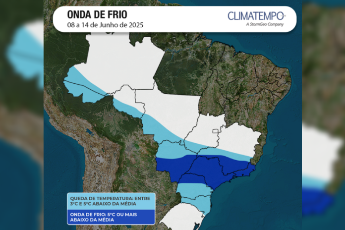 “Diferente daquela onda de frio que acabamos de sentir na virada de maio para junho, desta vez o centro da massa de ar frio, que é a região de frio mais intensa do sistema, será sobre o oceano. Mas como a massa de ar é muito forte, jogará muito ar frio do oceano para o continente e isso vai manter as temperaturas mais baixas por mais tempo”, explica a equipe técnica do Climatempo.