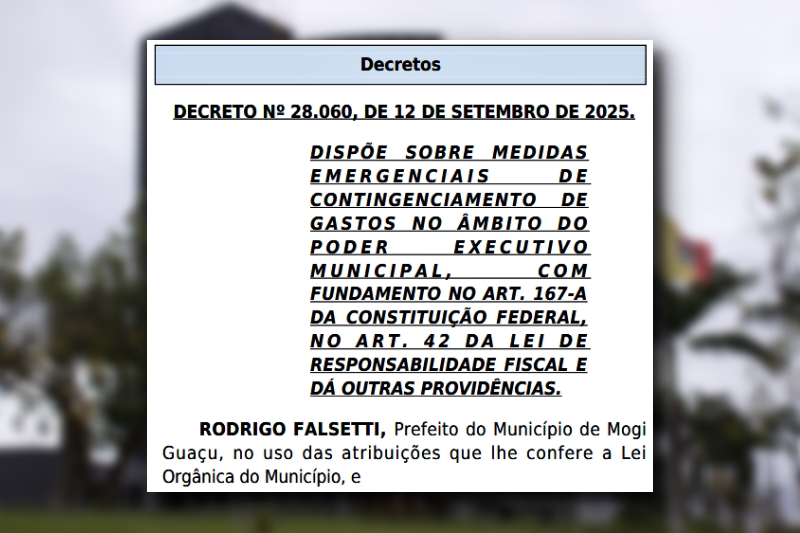 O prefeito Rodrigo Falsetti (PSD) assinou o Decreto nº 28.060/2025, publicado neste sábado (13) no Diário Oficial do Município, que estabelece medidas emergenciais de contingenciamento de despesas em toda a administração municipal.