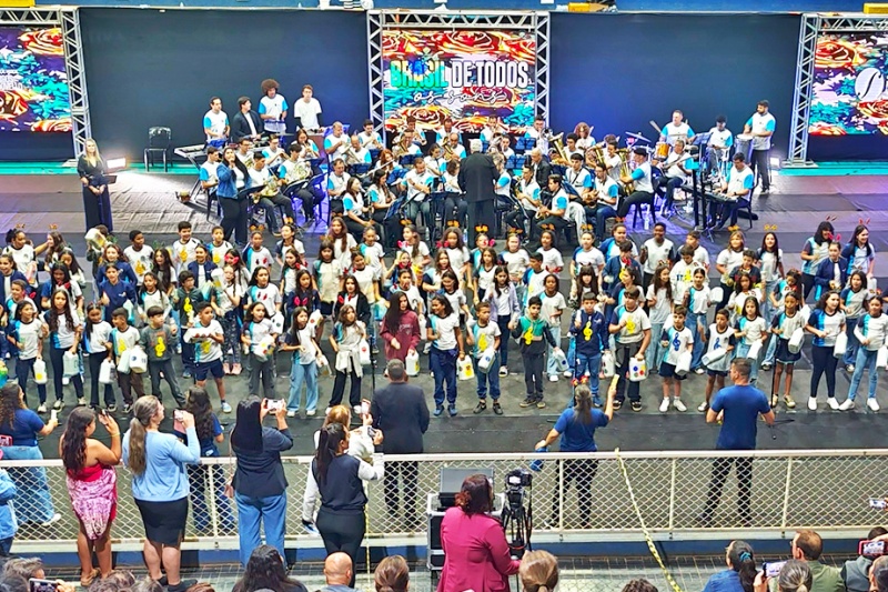 A apresentação ‘Brasil de Todos os Sons’ fez parte do Projeto Musicalização nas Escolas Municipais e contou com a participação especial da Banda Sinfônica de Mogi Guaçu.