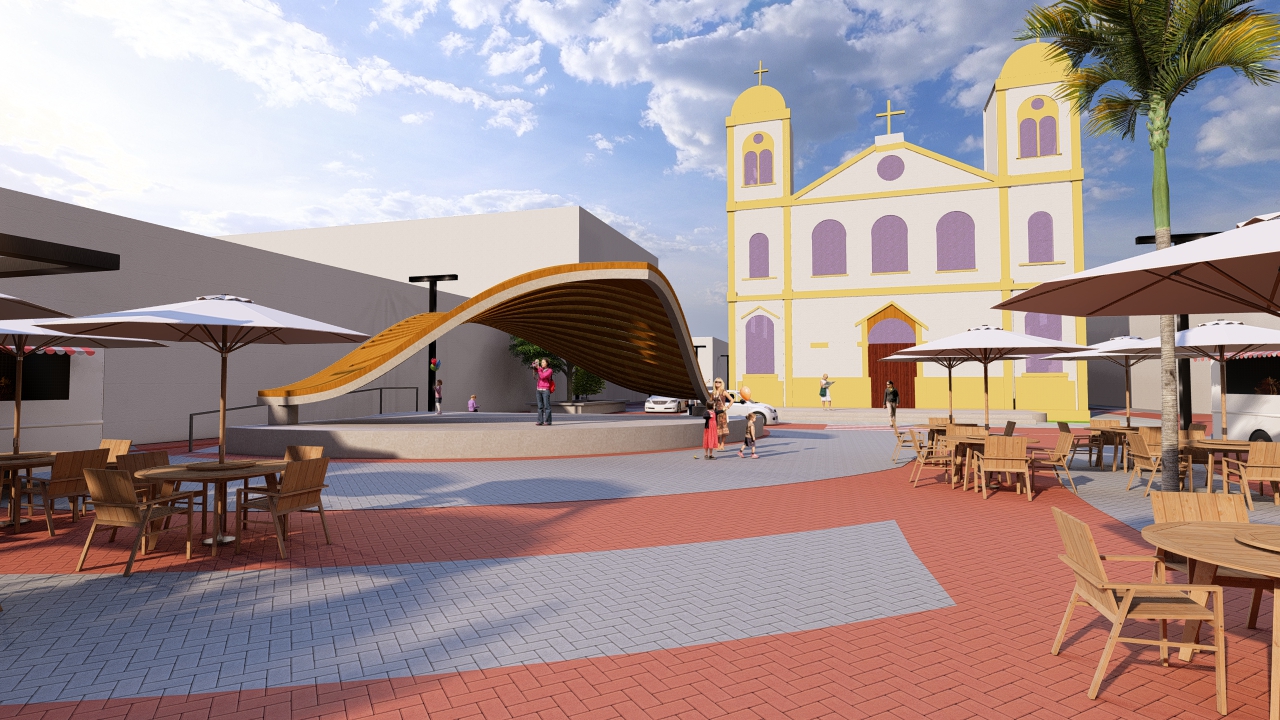 Entre os destaques estão a criação de faixas circulares inspiradas no conceito da água como símbolo de origem e movimento, instalação de fiação subterrânea, novo Pórtico Apeíma, Fonte Interativa Coara e um coreto reinterpretado em linguagem contemporânea. A proposta inclui ainda ampliação de áreas úteis, novos bancos, pergolados e banheiro público.