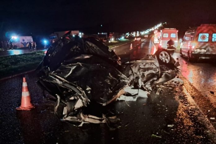 A colisão ocorreu por volta das 19h00, na altura do quilômetro 197, em meio à chuva, envolvendo um automóvel Onix e uma carreta Volvo.