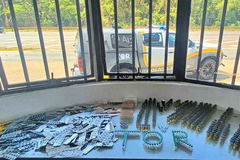 Durante a fiscalização, os agentes encontraram 4.022 medicamentos, entre eles ampolas de anabolizantes, remédios controlados e produtos de origem estrangeira.