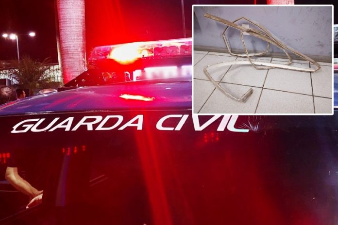 O suspeito foi abordado minutos depois, a cerca de 20 metros do local, ainda carregando um saco plástico com aproximadamente três metros de frisos de alumínio.