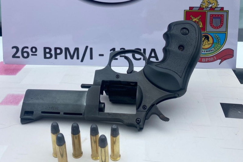 Os policiais acompanharam o morador até a residência, onde ele indicou o local em que guardava o armamento. No imóvel foi localizado um revólver calibre .38 de fabricação argentina, sem numeração aparente, além de seis munições intactas.