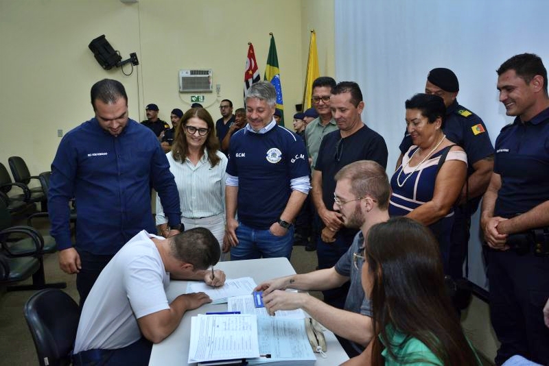 A cerimônia, realizada no Centro Cultural José Fantinatto, marcou a assinatura dos contratos e reuniu autoridades municipais, integrantes da corporação e representantes do Legislativo.